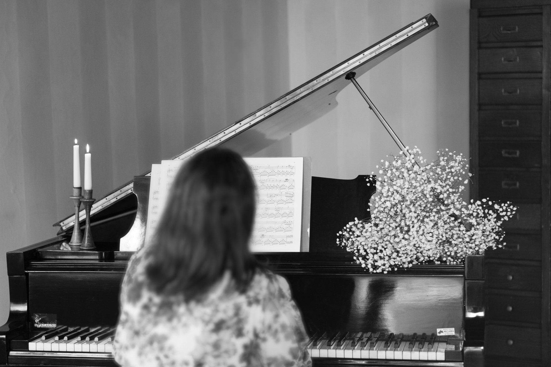Incuriosita da un pianoforte posizionato nel salotto di casa, a 4 anni scopre i tasti bianchi e neri... e non li lascerà più.
